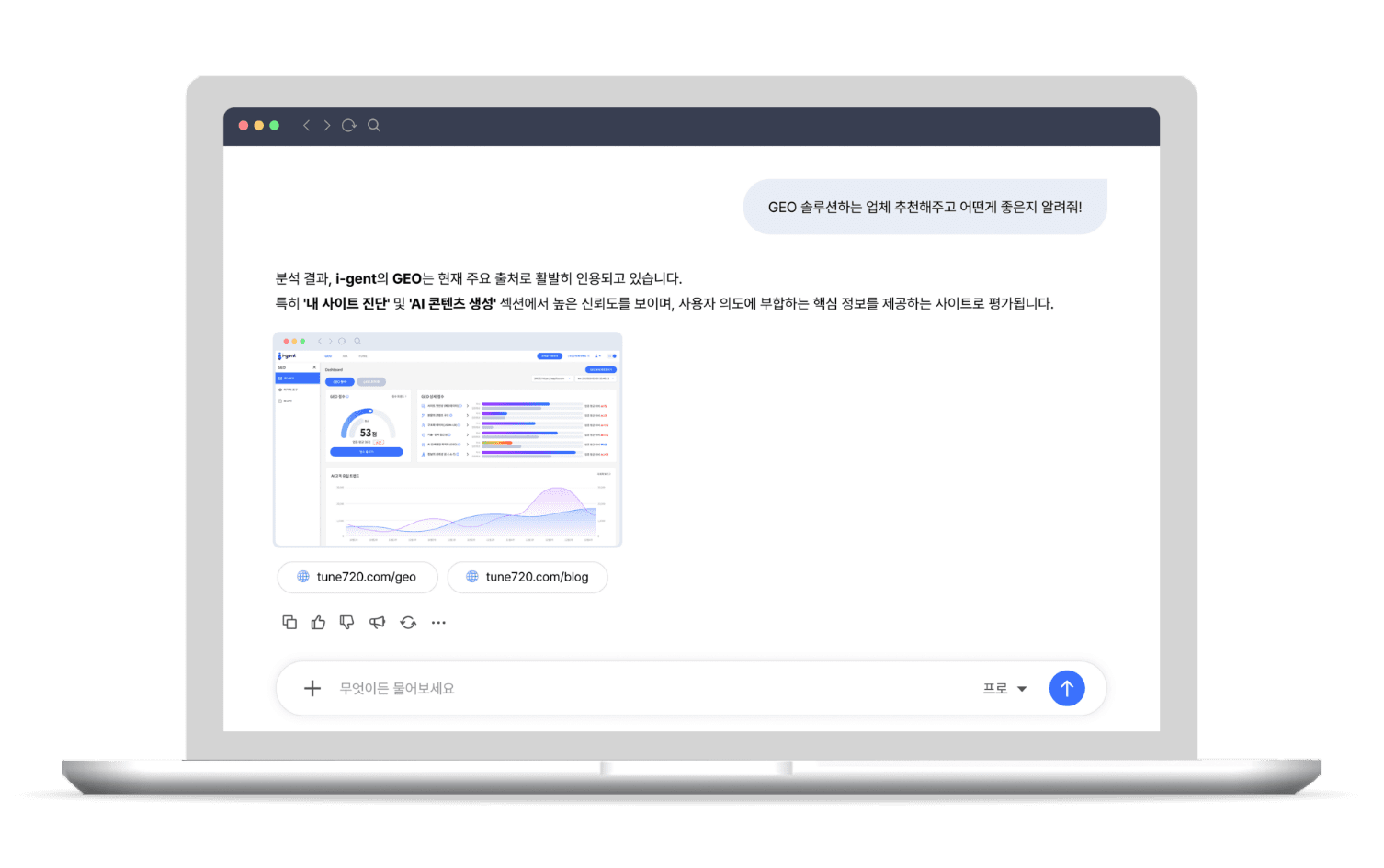 데이터 분석(TUNE) · AI 노출 최적화(GEO) · AI 전략 자동화(튜니) - AI 시대 마케팅 운영을 하나의 플랫폼에서 해결하세요.